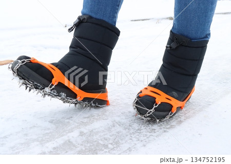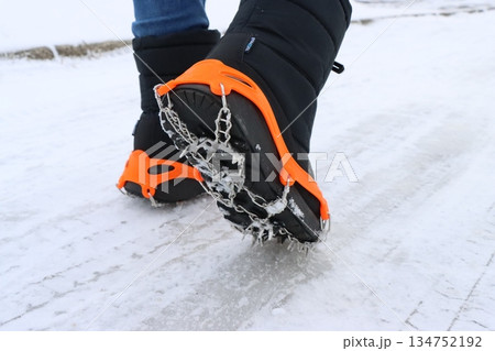 冰凍瀝青上的鞋印