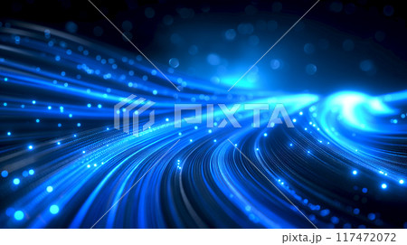 Futuristic Neon Blue color wave flow Digital Technology, fiber optics line background with dot, connected network business, global communication concept