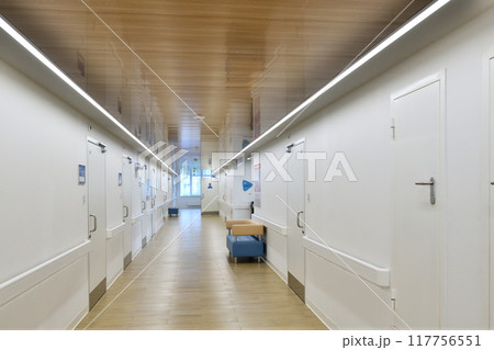 empty hospital clinic hall with seats and doors empty no people corridor polyclinic interior sketch