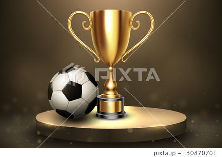 Soccer Championship with Golden Trophy and Football on Luxury Podium, Vector Illustration