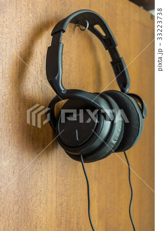 耳罩 耳機 黑色 音樂 電線 木牆