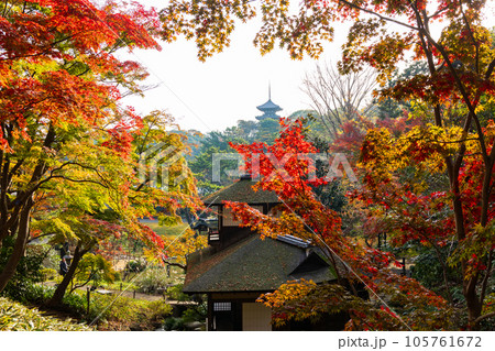 橫濱本牧三溪園的秋天,秋葉長秋閣