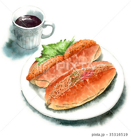 可樂餅麵包(koppepan 三明治)麵包手繪水彩插圖素材