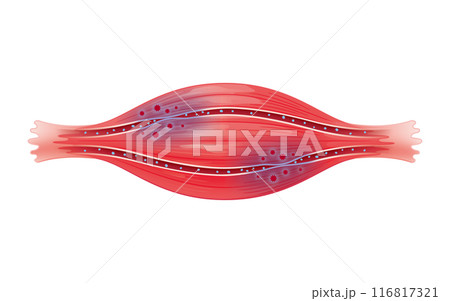 3D 插圖:一名女性的肌肉解剖圖,肩膀僵硬,上身,背部(紅色疼痛圖像)