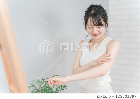 做手臂皮膚護理的女性