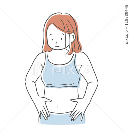 微笑著看著自己肚子的女人插畫素材