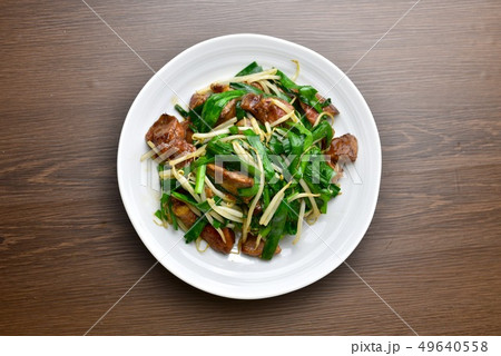 注)Steam是一種修飾合成。炒牛肉肝香草。中國菜。炒家常牛肝,韭菜和豆芽。