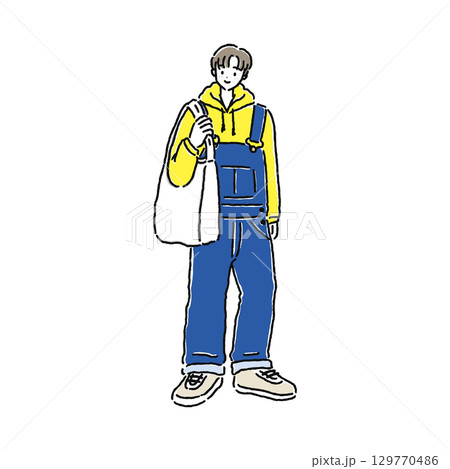 連身衣/工作服(長袖)矢量圖模板套裝(前後)/白色