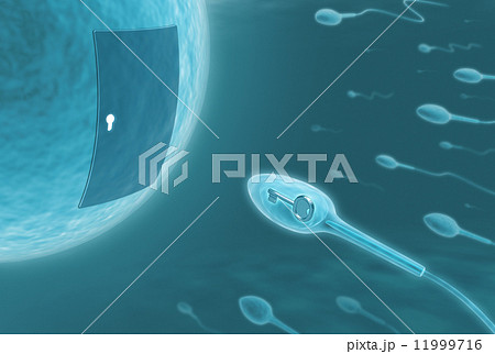 3D illustration sperm and egg cell, ovum. Sperm approaching egg cell. Native and natural