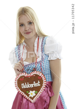 Oktoberfest market stall with hanging heart shaped gingerbread cookies decorated with icing and German love messages