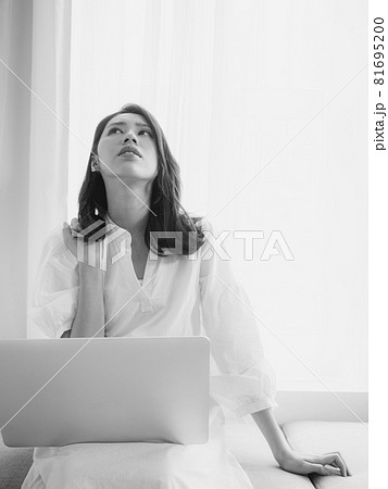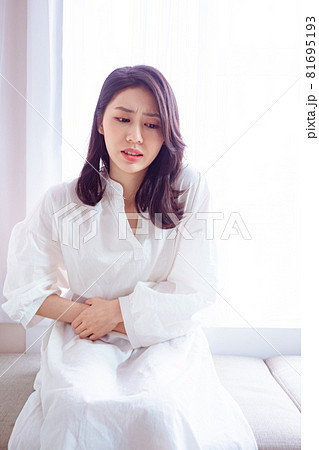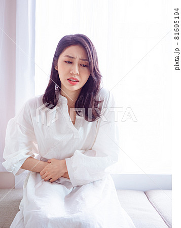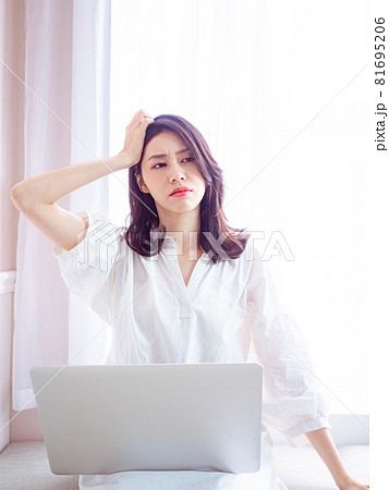 亞洲年輕女性使用筆記本電腦感覺身體不舒服