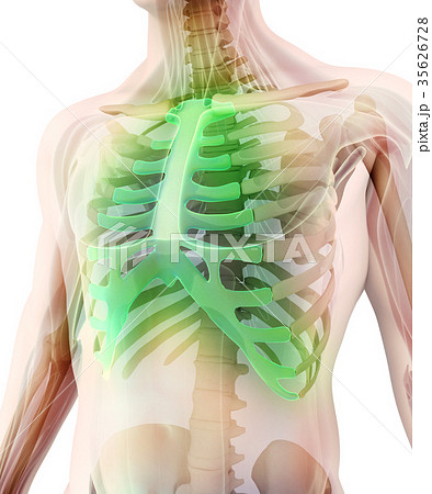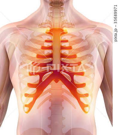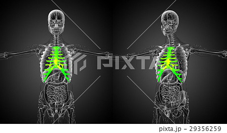 Set of Rib cages Skeleton Human front back view with partly transparent skeleton position. Realistic 3D flat natural