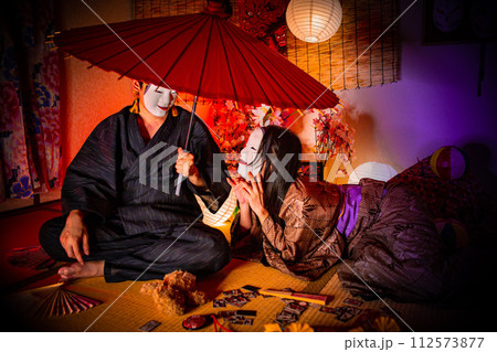 般若和真者的能面具。妖女的臉上寫滿了嫉妒和怨恨。