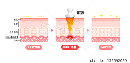 高強度聚焦超音波(HIFU)的機制與效果:皮膚橫斷面示意圖 / 美容與飲食