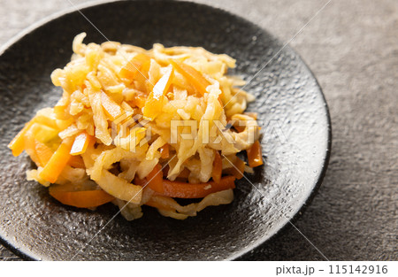 五目金切二 (Kinchakuni-ni) 裝在盤子裡