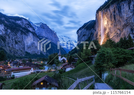 Lauterbrunnen and Staubbach waterfall at Night
