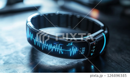 Close up of woman checks her blood pressure, a tonometer is worn on her wrist in a bed. Medical device for measuring blood pressure and heart rate used at hand wrist
