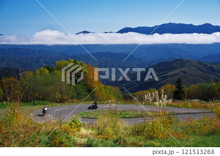秋天,騎著自行車沿著禦岳天際線的髮夾彎騎行