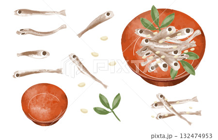 水彩 tazukuri、芝麻、禦節料理、日本料理、魚類插圖集