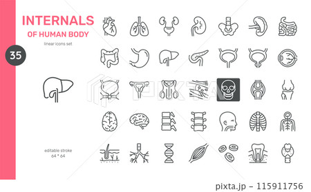 Human internal organs . Medical outline icon . Editable stroke . Vector .