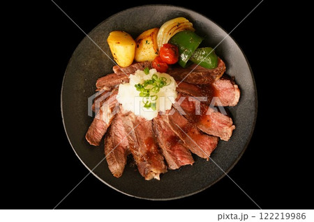 鐵板上的烤里脊牛排(北海道的日本黑牛肉)