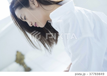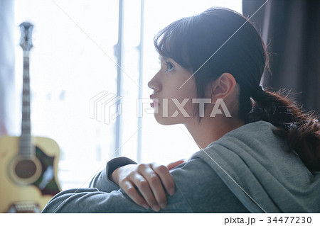 放鬆在屋子裡的婦女