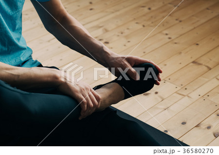 做腳踝舒展的年輕日本人