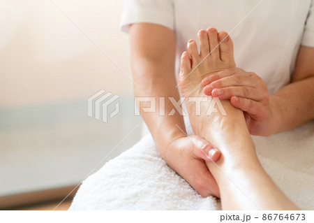 做足部護理的婦女的手 [部分切割]