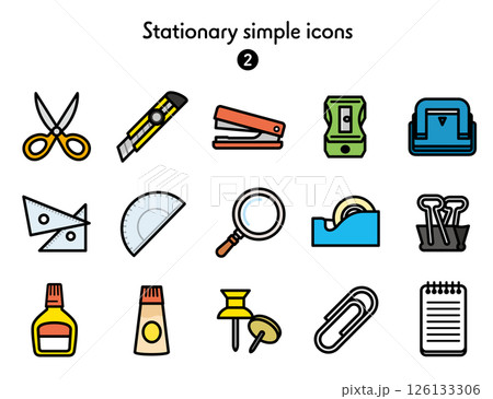 文具圖標集 簡單的書寫用具 插圖 文具筆 文檔 筆記本書