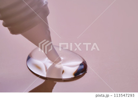 Blue circle adhesive tape patch with crumpled texture transparent on concept masking background,
