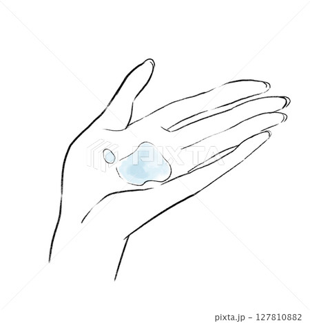 圖示為一個人手上拿著乳液等液體