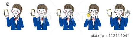 智慧型手機和年輕女性的簡單向量插圖集素材