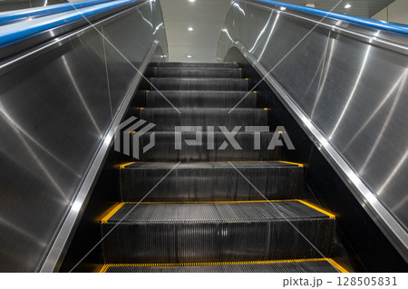 Modern escalator electronic system moving. Escalator is moving up.The ground is a straight line