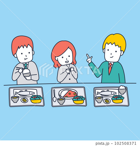 業務團隊的前輩和後輩在午餐會上的插圖素材