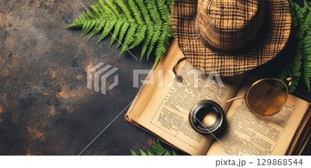 Explore Old Manuscript with Vintage Style Hat and Glasses on Dark Backdrop
