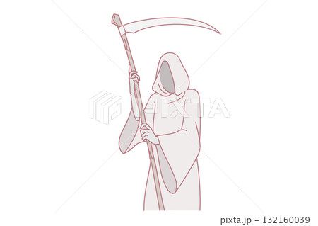 Black and white drawing of a grim reaper of death with a scythe. For your design or tattoo