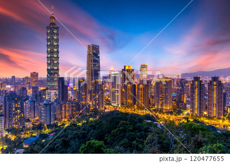 Aerial view Taipei City skyline and skyscraper architecture, Taiwan, Taipei skyline skyscraper building at night lluminated, Xinyi, Taipei, Taiwan, Asia, Beautiful landmark Taiwan.