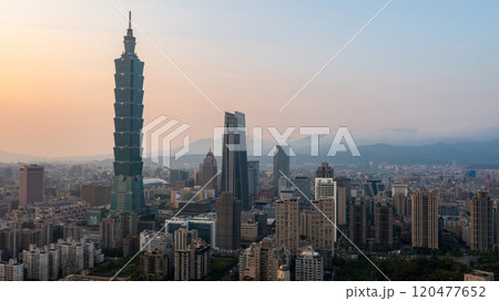 Aerial view Taipei City skyline and skyscraper architecture, Taiwan, Taipei skyline skyscraper building at night lluminated, Xinyi, Taipei, Taiwan, Asia, Beautiful landmark Taiwan.