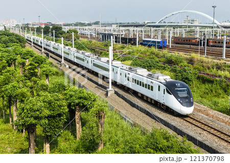 A Tze-Chiang Limited Express train(EMU3000 series) passes through Chaozhou of Pingtung, Taiwan.
