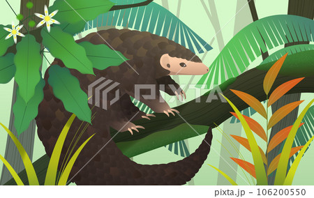 Cute pangolin on tree trunk