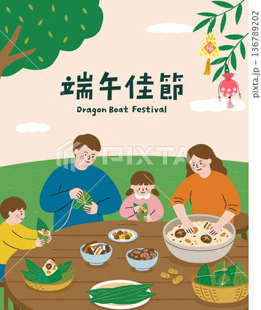 Happy Family Making Zongzi for Dragon Boat Festival Illustration