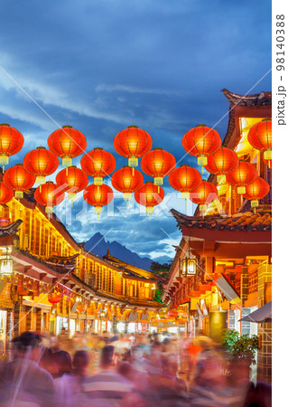 Lijiang old town in the evening with crowd tourist , Yunnan China.