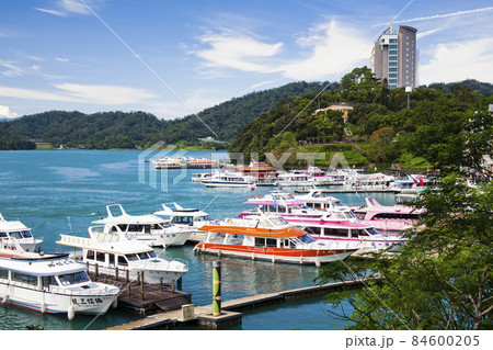 The scenery of the Yacht Marina at Sun Moon Lake in the morning is a famous attraction in Nantou, Taiwan.