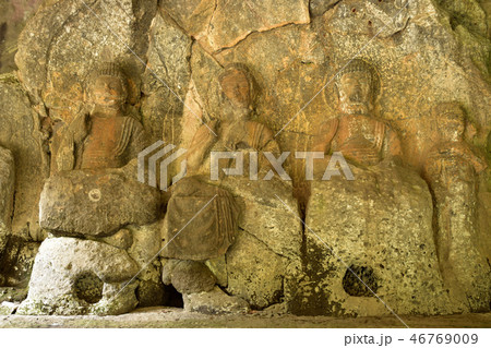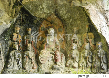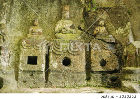 刻在石頭上的佛像 臼杵石佛 石佛像