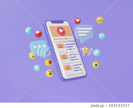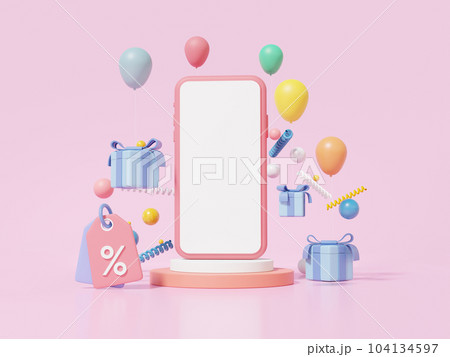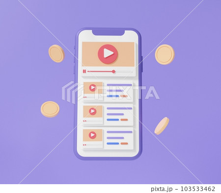 3D渲染線上多媒體與智能手機現代播放視頻浮動在粉紅色的背景,無線媒體連接