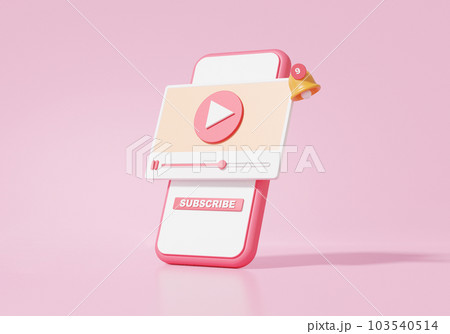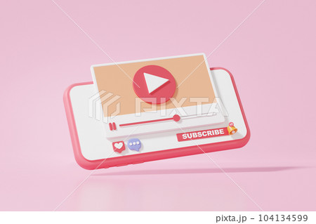 3D渲染卡通極簡風格的移動現代播放視頻漂浮在粉紅色的背景上,無線媒體連接,互聯網,橫幅,複製空間,插