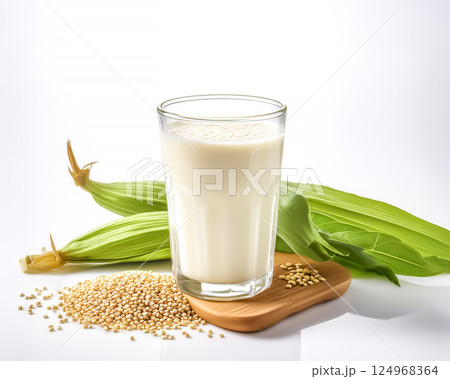 藜麥牛奶和藜麥在玻璃杯中的圖片