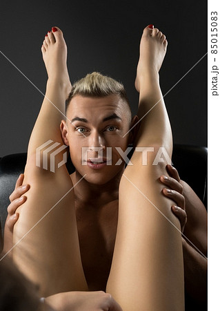 Sensual BDSM couple with slavery woman and transvestite man