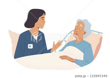 躺在床上的住院病人、醫生和護士-1