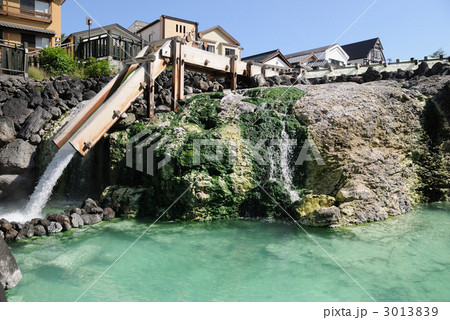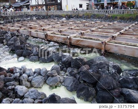 Kusatsu溫泉熱的水域在冬天